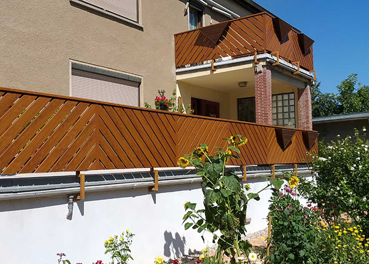 Das Material ist zu 100 Prozent wetterfest. UV-beständig. Pflegeleicht. Auch nach Jahren bleibt die Farbe satt und das Geländer in Form. Kratzer fallen kaum auf, die Oberfläche splittert nicht, es gibt keine Wasserflecken oder Harzprobleme wie bei echtem Holz.